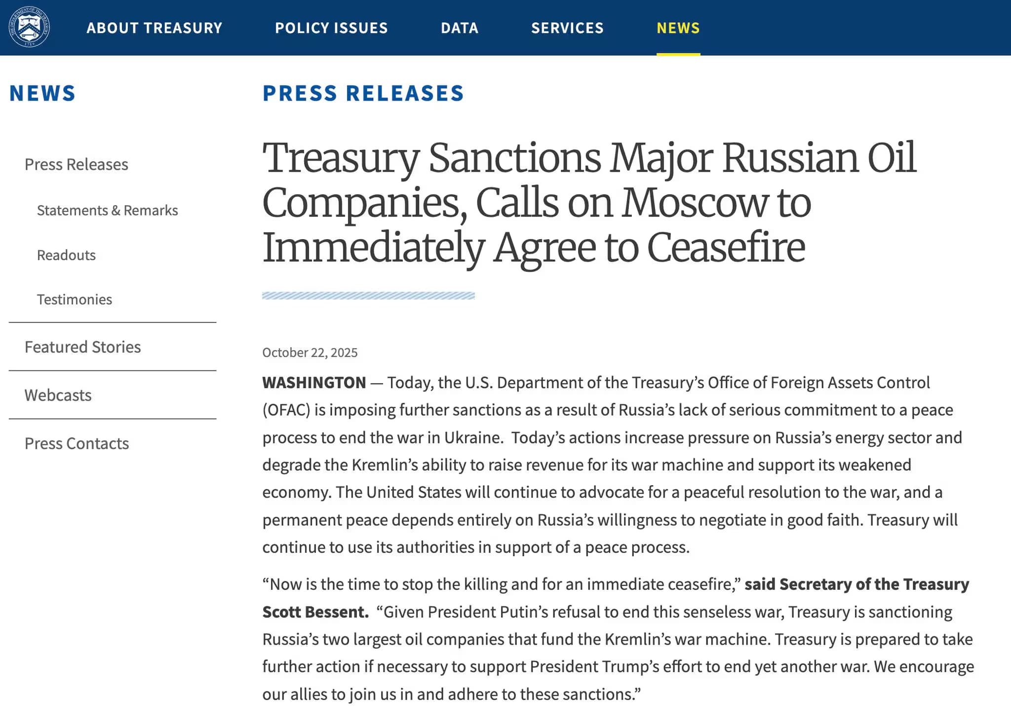 The U.S. sanctions pause has ended. The U.S., especially OFAC, had a significant list of pending actions. The designation of Lukoil and Rosneft is mainly symbo…